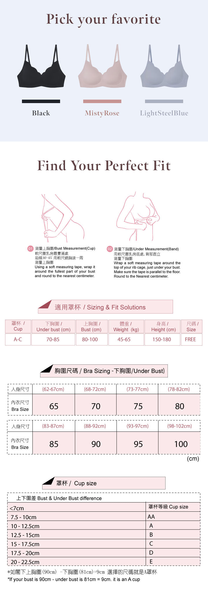 3. 下厚上薄Push Up綿杯,胸型集中,視覺顯圓渾胸型