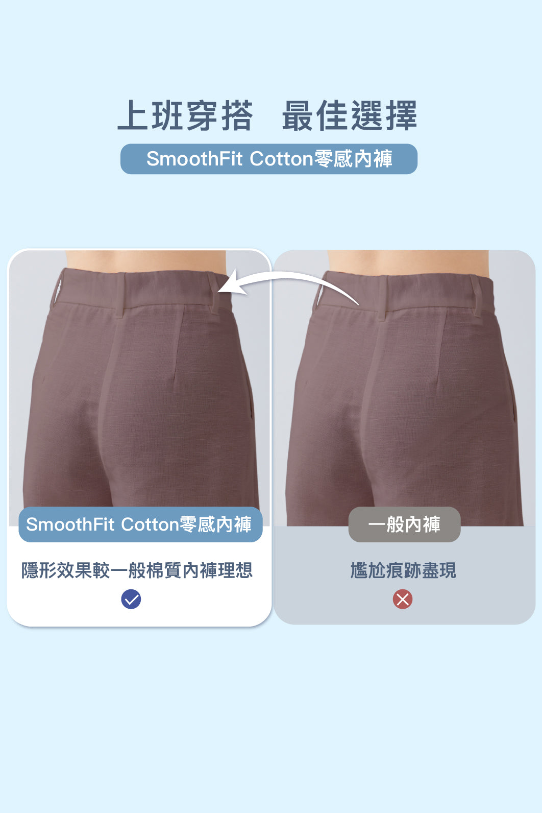 ✨ 低痕感內褲不只有錦綸一個材質!!全新【SmoothFit Cotton】系列,將 80支親膚棉 融入低痕感設計,帶來更柔軟、更透氣的零著感舒適體驗。不論日常、運動或居家,全面呵護你的肌膚,讓 「輕透少痕」+「親膚舒適」 成為妳的新標準!