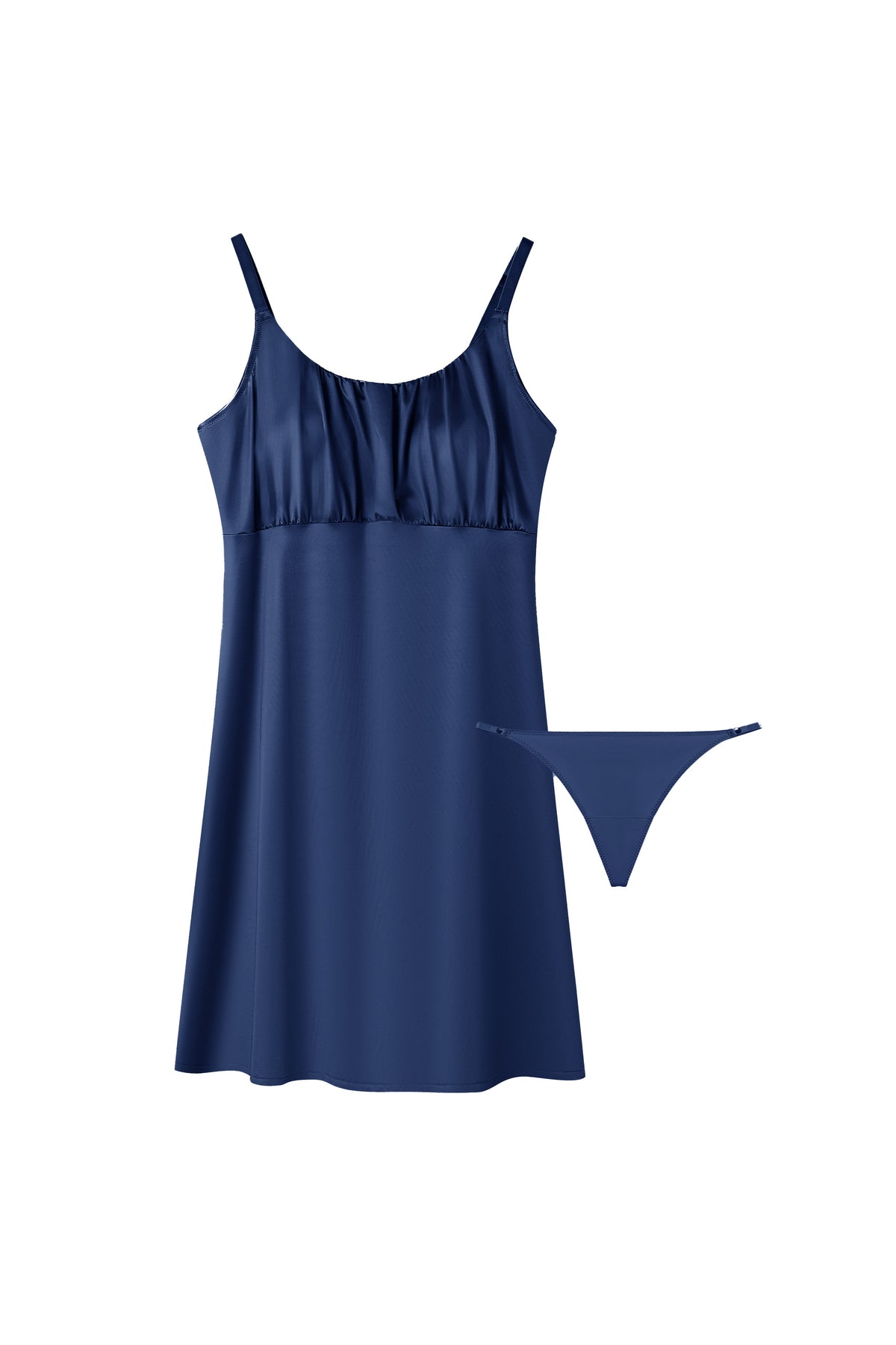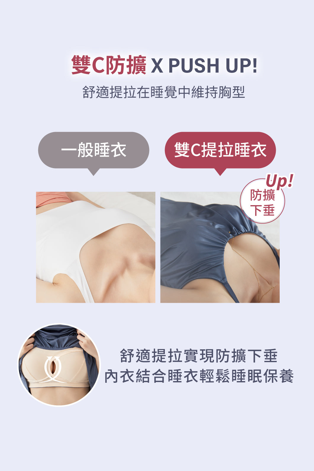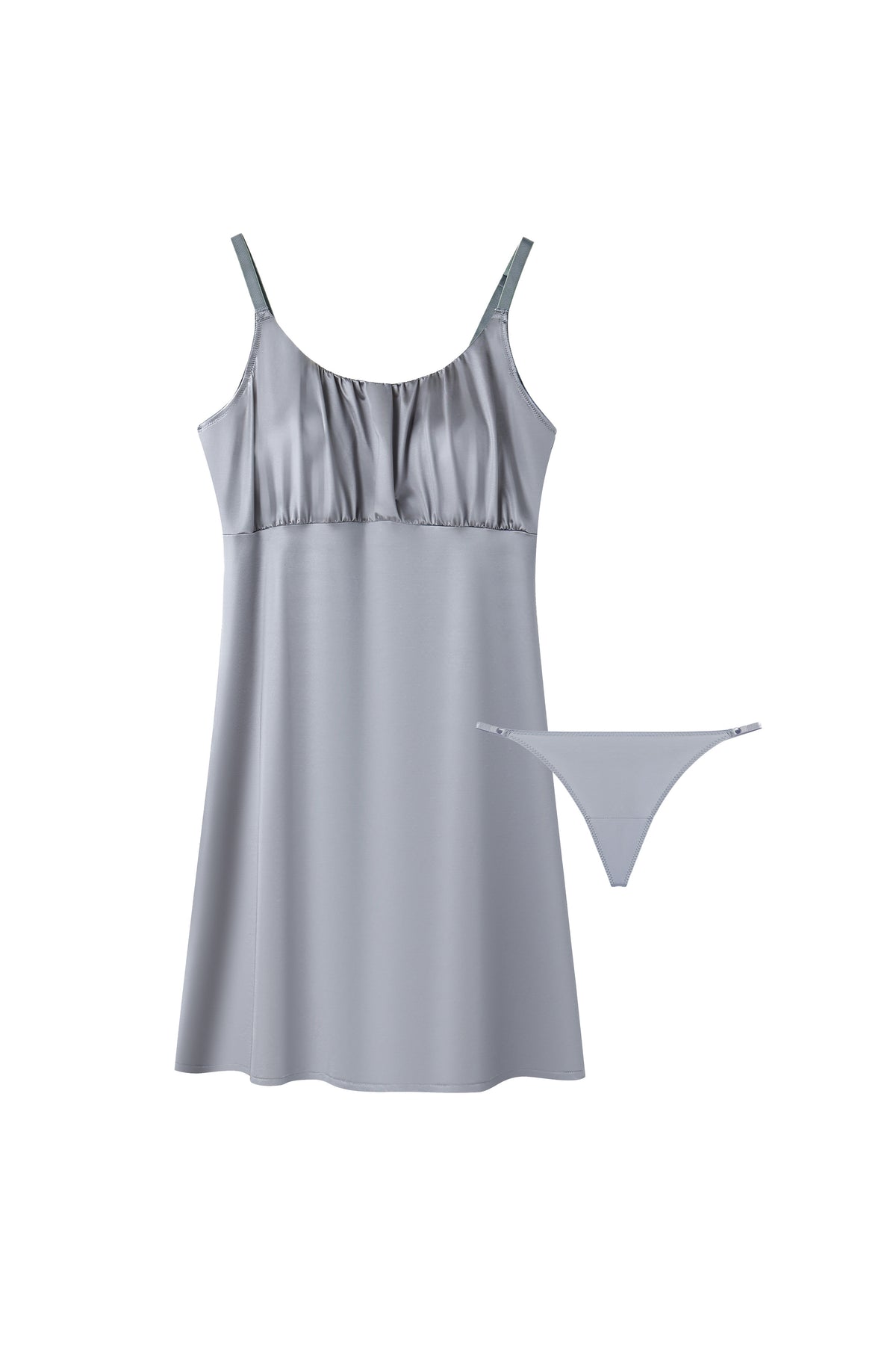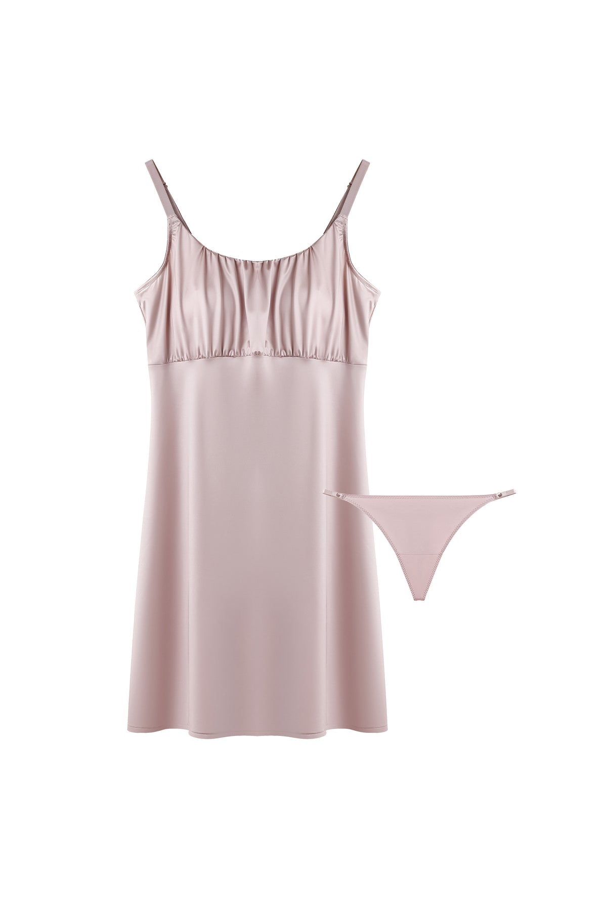 【Glow-Up Magic Luxe】2-IN-1 雙C提拉絲滑緞面吊帶美胸睡裙(配丁字褲)